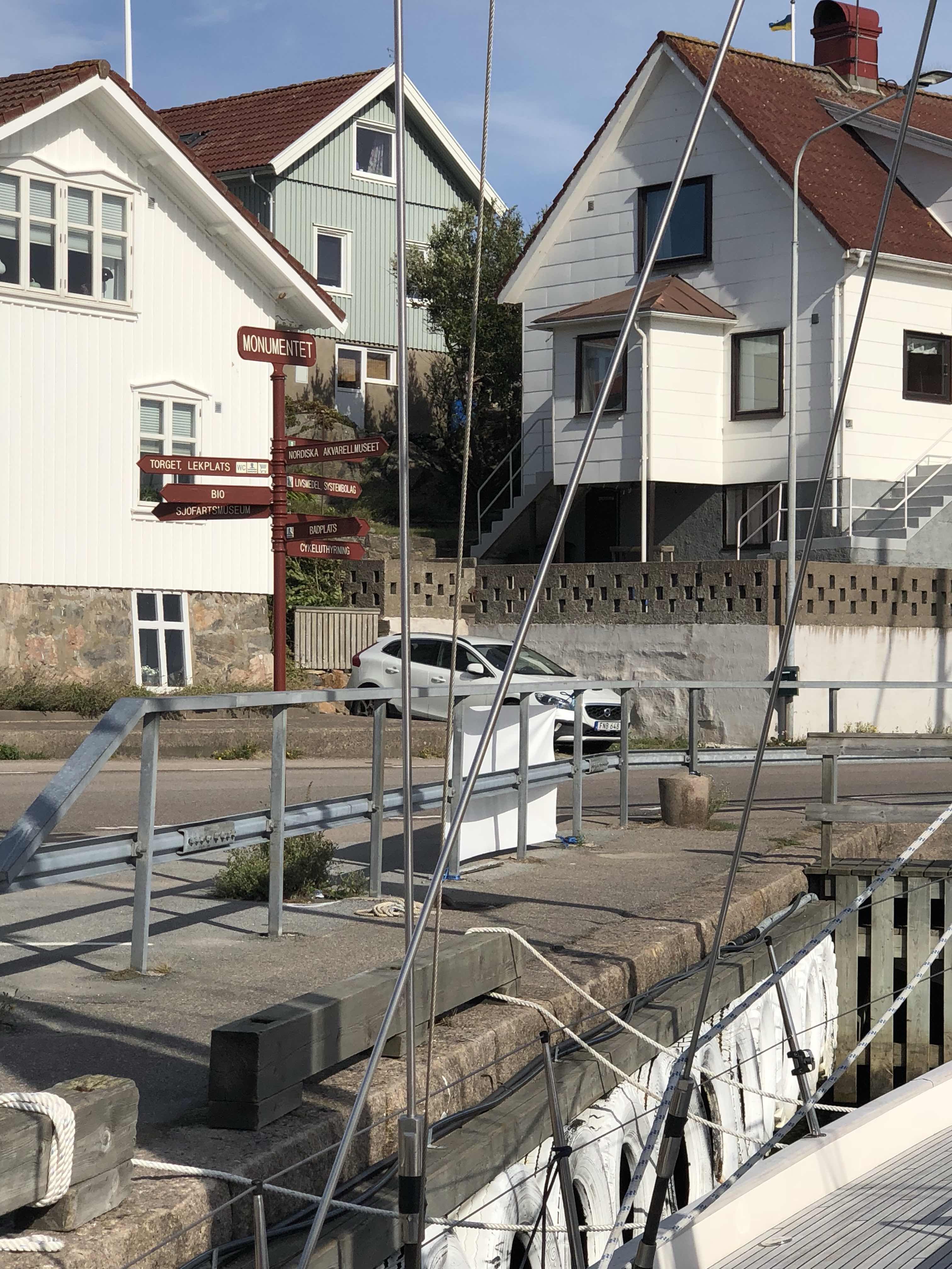 I morse blåste det rejält, över 30 kn i byarna. Känns bra ligga förtöjd i en riktigt bra och skyddad hamn.