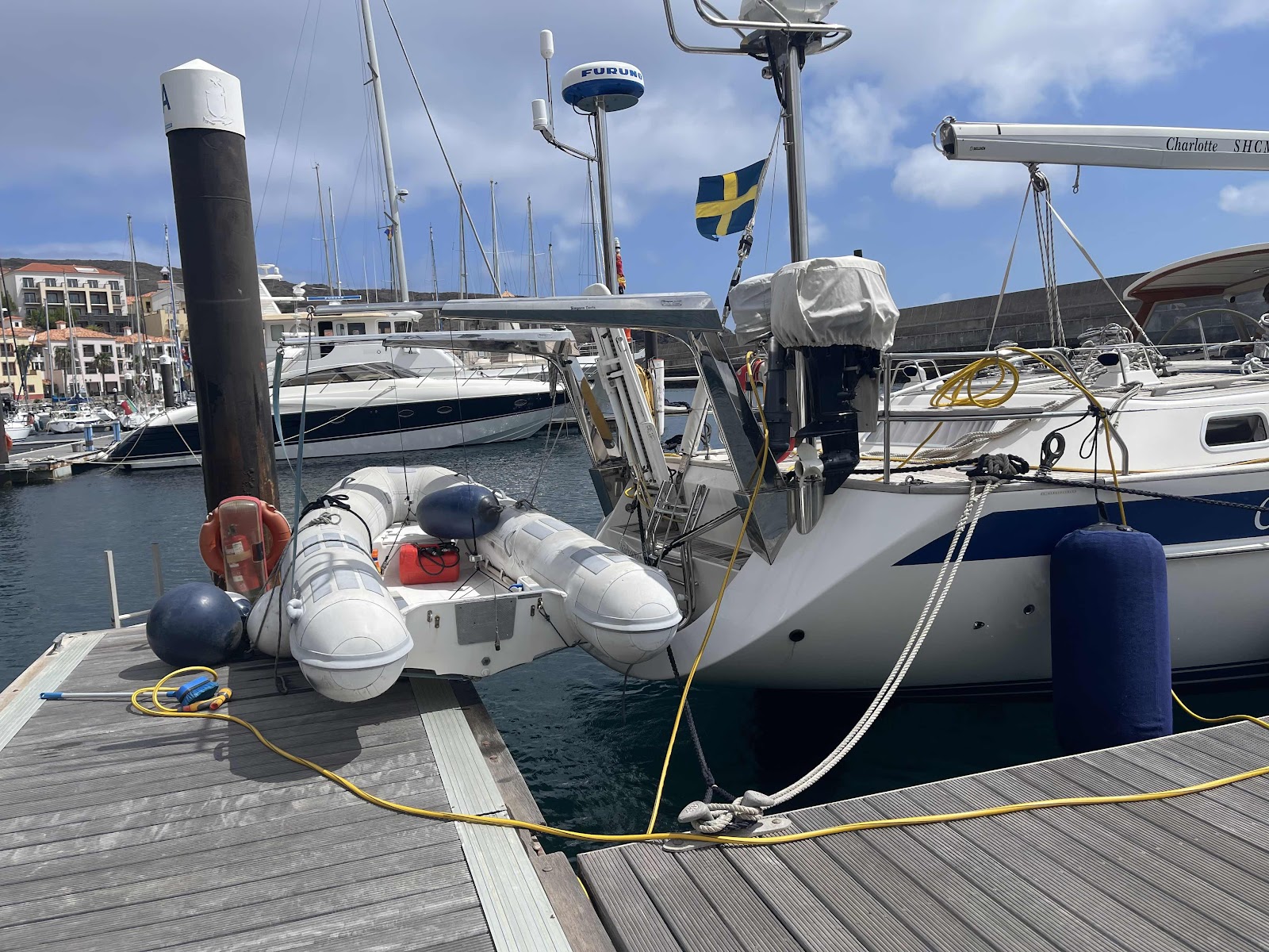 Grannbåten här i hamnen är från Köpenhamn. Den har hissad Arc+ flagga. Vi hann inte få vår flagga, men vi ser fram mot att hissa den i Las Palmas om drygt en månad när alla båtar som ska ”tävla” över Atlanten ses.