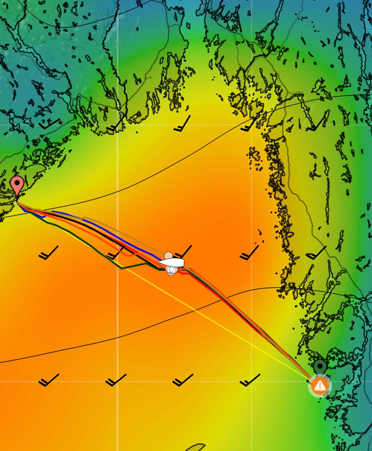 Beslutet blev att bunkra lite mer och avvakta till i morgon. Utsikterna är sydvästlig vind 20-28 kn som mest men mycket bättre riktning.